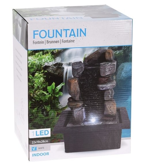 • dekorační pokojová fontánka s uzavřeným oběhem vody- poskytuje příjemné klima, jelikož přirozeně zvlhčuje vzduch- osvětlení ještě více podtrhne příjemnou atmosféru a společně se zvuky tekoucího vodopádu přispějí k celkové relaxaci- vyrobená z polyresinu, který si dlouho drží barevnou stálost a navíc je odolný vůči UV záření, vůbec tedy nevadí, když ji postavíte na přímé sluneční světlo- atmosferická LED světelná dioda s dlouhou životností- neustálá cirkulace vody s nízkými náklady na energii- vnitřní tiché čerpadlo zajišťuje nekonečné spolehlivé používání- tato soběstačná interiérová fontána může být umístěna kdekoliv v domácnosti i v krytém exteriéru- rychlé a jednoduché zprovoznění nezabere ani minutu- délka přívodního kabelu 1,5 metru- rozměry: 22 x 19 x výška 28 cm- napájení: 220 až 240 V- design: skalní vodopád