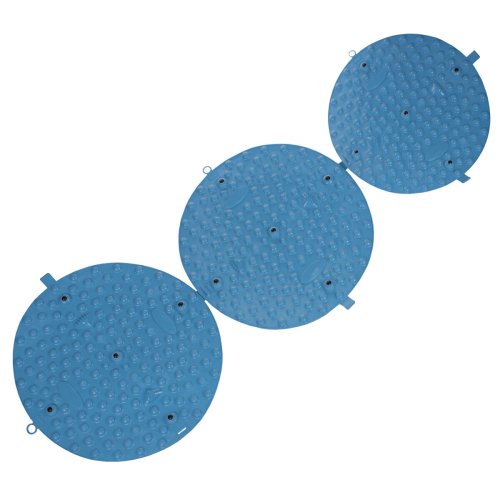 Masážní podložka Merco Foot Massage Circle 45 je skvělou pomůckou pro masáž chodidel, celkovou relaxaci a uvolnění svalů. Podložka ve tvaru kruhu o průměru 45 cm je vyrobena z tvrdšího pevného TPE materiálu a je opatřena třemi druhy masážních výstupků, které stimulují, protahují a uvolňují klíčové svaly a šlachy na chodidlech, klenbě a prstech. Stačí se na podložku během dne několikrát postavit a pohybovat se na ní. Tím si jemně namasírujete chodidla, čímž vyšlete signály k úlevě od bolesti do celého těla, podpoříte svůj krevní oběh, zbavíte se stresu a toxinů, zlepšíte metabolismus a zvýšíte tak svou energii a uvolníte se. Rychlá a účinná úleva od stresu a bolesti – to je podložka Merco Foot Massage Circle 45. - průměr podložky: 45 cm - materiál: TPE - masážní výstupky: polokoule o průměru 1,2 a 2,5 cm s výškou 0,5 – 1 cm, jehlany 5 x 3,5 x 3,5 cm, výška 1 cm - očka na obvodu pro možnost částečného srolování nebo zavěšení podložky při uskladnění nebo na spojení více podložek dohromady - hmotnost: 200 g