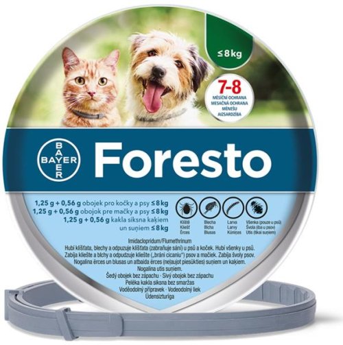 Obojek Foresto odpuzuje a hubí klíšťata a blechy pouhým kontaktem se srstí či kůží zvířete – tedy dříve, než se mohou přisát, a tím snižuje riziko přenosu vektorových onemocnění. Proti těmto parazitům působí nepřetržitě po dobu až 8 měsíců. Vlastnosti obojku: