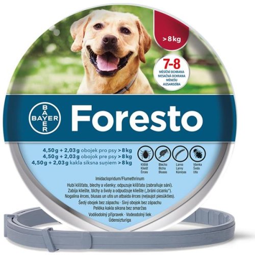 Obojek Foresto odpuzuje a hubí klíšťata a blechy pouhým kontaktem se srstí či kůží zvířete – tedy dříve, než se mohou přisát a tím snižuje riziko přenosu vektorových onemocnění. Proti těmto parazitům působí nepřetržitě po dobu až 8 měsíců. Vlastnosti obojku:
