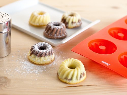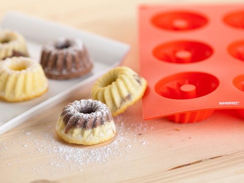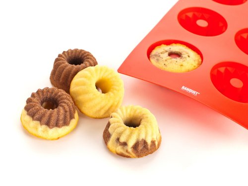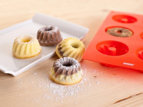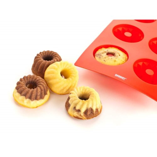 Silikonová forma na 6 ks mini báboviček CULINARIA Red. Forma je odolná vysokým teplotám (do 230 st.C), neváže chutě ani pachy pokrmů, snadno se udržuje (lze mýt v myčce na nádobí). Silikon je velmi populární materiál, který pro své jedinečné vlastnosti našel své uplatnění i v kuchyni. Vyrábí se z něj různé druhy forem na pečení, vály a válečky na těsto, stěrky, mašlovačky, různé druhy kuchyňské náčiní a mnohé další výrobky.