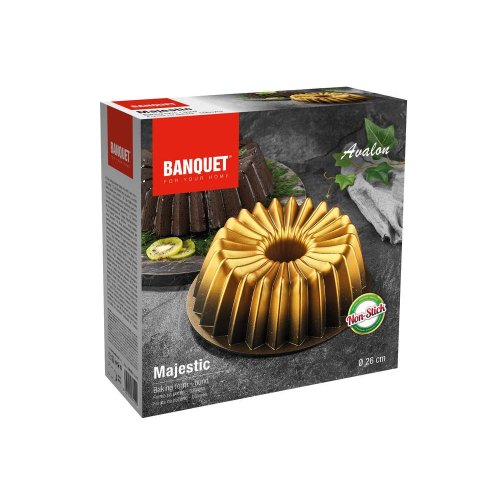 Litá hliníková pečící forma na bábovku o průměru 26 cm, MAJESTIC Avalon s nepřilnavým povrchem, pro pečení třených, kynutých a piškotových těst. Je vhodná pro elektrické, plynové i horkovzdušné trouby.