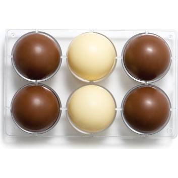 3D polykarbonátová forma na čokoládu ve tvaru koule.