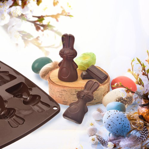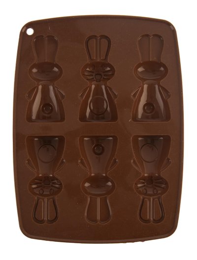rozměry: 24 x 18 x 2 cm rozměry zajíček: 9 x 4 cm materiál: silikon barva: hnědá forma na 6 ks
