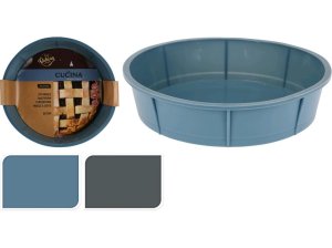 Forma na dort 27 cm, silikon mix barev. výška: 6 cm průměr: 27 cm materiál: silikon mix barev: modrá, antracit mikrovlnka: ano myčka: ano Kulatá silikonová forma je odolná vůči vysokým teplotám (do 240°C), …