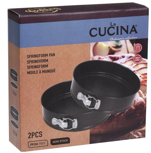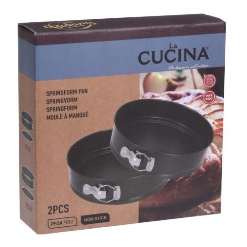 Praktická sada pružinových forem z kvalitního kovu s nepřilnavým povrchem, který zajišťuje snadné vyjmutí těsta a jednoduché čištění. Díky dvěma velikostem máte vždy po ruce ideální formu na přípravu různých druhů moučníků a dezertů.