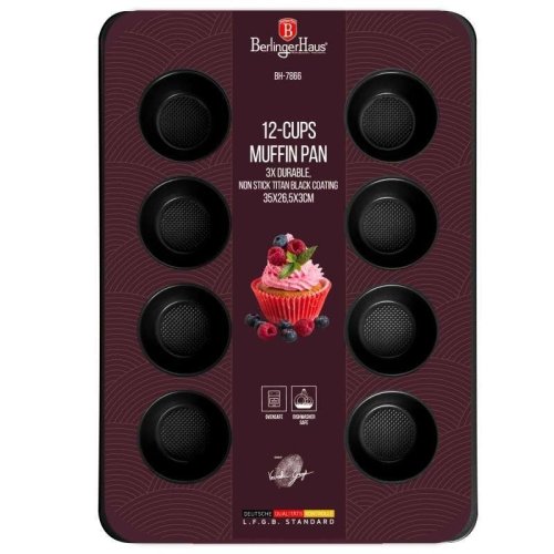 Připravte sladkou pochoutku pro sebe a své děti nebo pohostěte návštěvu. S formou na pečení Burgundy Metallic Line od značky Berlingerhaus upečete 12 muffinů najednou. Dopřejte si lahodný zákusek ke kávě.