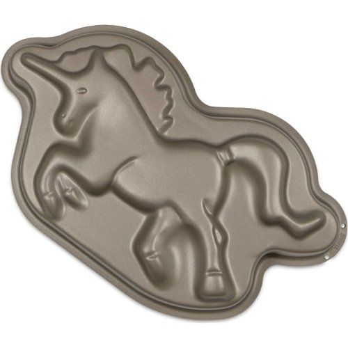 Forma na pečení ve tvaru jednorožce nejen na dětské dorty k narozeninám i jiným příležitostem. Objem 2,5 l, rozměry 36 x 21 cm.