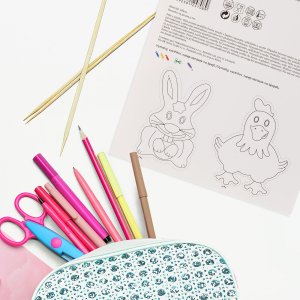 Originální balení: na zadní straně papírové karty, na které je forma připevněna, jsou pro děti připraveny obrázky zvířátek, které si mohou dle vlastní fantazie vybarvit, vystřihnout, nalepit na špejli a hrát s nimi divadlo.