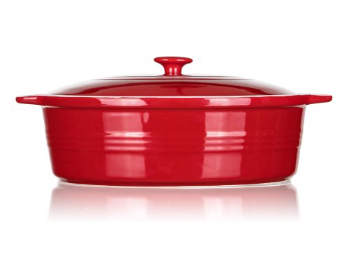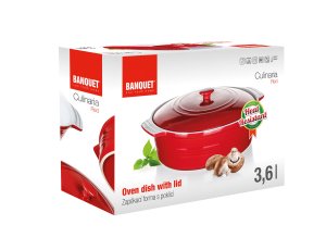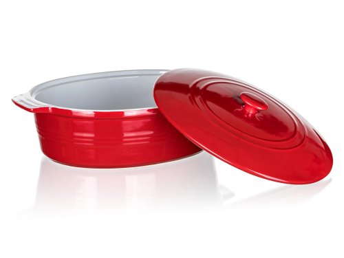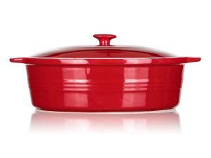 Keramická oválná zapékací forma s víkem CULINARIA Red, s praktickými držadly pro snadnou manipulaci,. Vnější strana červená + vnitřní strana bílá glazura. Keramické formy rovnoměrně absorbují teplo a postupně ho uvolňují, díky čemuž se pokrmy dobře propečou. Není vhodné k použití na plotně sporáku.