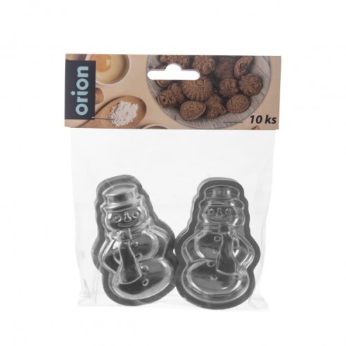 Formička na cukroví sněhulák. Cena za balení 10 ks. Materiál pocínovaný zdravotně nezávadný plech. Rozměry 75 x 50 mm (V x Š). Není vhodné do myčky nádobí. EAN 8592381178321