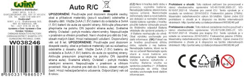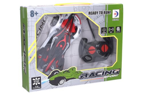 Formule RC na dálkové ovládání. Rozměry 20,5x9,5x5,5 cm. Světelné efekty. 3xAA baterie do auta, 2xAA do ovladače nejsou součástí.