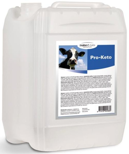 Problém: Již na začátku laktace se mnoho krav nachází v negativní energetické bilanci. Ke kompenzaci tohoto stavu dochází mobilizací tělesného tuku. Tyto tukové rezervy jsou z důvodu metabolizace nejprve transportovány do jater a následně do mléčné žlázy. U vysokoprodukčních dojnic však není kapacita tuku a cukrů k metabolizaci dostatečná, proto vznikají keto - látky, jejichž vyplavování do krve může vést k onemocnění /ketóza/, které se může vyskytnout i v pozdější fázi laktace. Abychom se vyhnuli těmto problémům, je pro zvíře důležité, zvýšit energetický příjem. Složení v 1 kg: propylenglykol, glycerin, vitamin E 2 500 mg, vitamin B12 100 μg, niacinamid 7425 mg, cholinchlorid 10 000 mg, zinek 1 000 mg. Způsob aplikace: Podávejte vysokoprodukčním dojnicím po dobu prvních 3 – 6 týdnů po otelení v krmné dávce, ústně nebo pomocí dávkovače. Dávkování: Dojnice