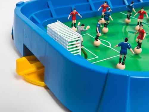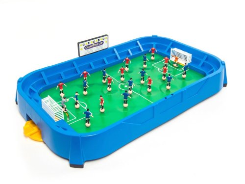 Oblíbená "cvrnkací" stolní hra pro všechny fandy fotbalu. Zahrajte si tento skvělý stolní fotbal doma s kamarády nebo rodiči i během deštivých dnů, kdy nemůžete vyběhnout na trávník. Tento jedinečný stolní fotbal je z kvalitního plastu a týmy jsou složeny z ručně malovaných hráčů. Vyrobeno v ČR. Hračka vhodná pro děti od 5 let.