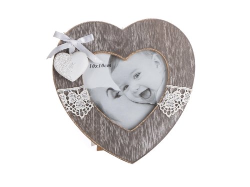 Rámeček s krajkou LACEWORK o rozměru 15 x 15 x 2 cm na fotografii o velikosti 10 x 10 cm,, tvar srdce je vhodný k dekorování bytu. Ozdobné rámečky na fotky vytváří atmosféru útulného domova.