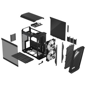 Fractal Design Torrent Compact Torrent Compact je zkonstruován tak, aby co nejefektivněji chladil vaši kompaktní sestavu vzduchem díky otevřené přední mřížce a dvěma našim ventilátorům 180 x 38 mm Dynamic PWM (Prisma pro verzi RGB), což z něj dělá ideální volbu pro milovníky vzduchového chlazení, kteří hledají kompaktní skříň.