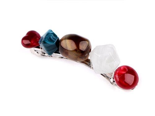 Francouzská spona zdobená akrylátovými kameny, které jsou inspirovány pravými minerály, poutavě ozdobí váš účes. Ať už máte jemné prameny nebo husté lokny, touto sponou snadno sepnete vlasy do copu nebo vytvoříte elegantní drdol, který bude vypadat, jako kdyby ho vytvořil profesionál. Spona má kvalitní celokovové provedení, zacvakávací mechanismus je pevný. Délka části pro vlasy je 5,5 cm.