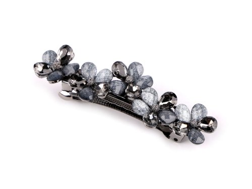 Francouzská spona zdobená akrylátovými broušenými květy luxusně ozdobí váš účes. Má nádherný lesk, který přitahuje pozornost. Luxusně ozdobí slavnostní účes. Ať už máte jemné prameny nebo husté lokny, touto sponou snadno sepnete vlasy do copu nebo vytvoříte elegantní drdol, který bude vypadat, jako kdyby ho vytvořil profesionál. Spona má velmi kvalitní celokovové provedení. Zacvakávací mechanismus je pevný. Délka části pro vlasy je 4 cm.