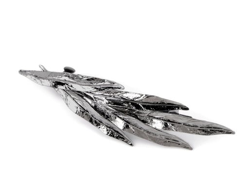 Celokovová francouzská spona s listy elegantně ozdobí váš účes. Hodí se na společenské akce jako jsou plesy, svatby, návštěvy divadel, párty apod., ale využijete ji i na běžné nošení. Je ideálním doplňkem do každého šatníku. Dokáže udržet vlasy pevně na svém místě a přitom dodává účesu půvab a eleganci. Má velmi kvalitní provedení, zacvakávací mechanismus je pevný. Délka části pro vlasy je 5 cm.