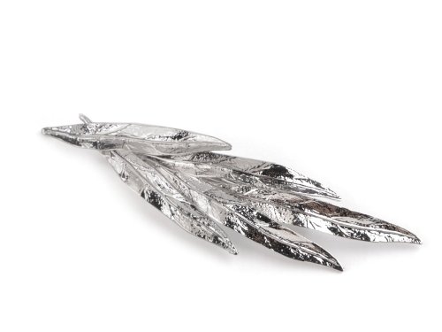Celokovová francouzská spona s listy elegantně ozdobí váš účes. Hodí se na společenské akce jako jsou plesy, svatby, návštěvy divadel, párty apod., ale využijete ji i na běžné nošení. Je ideálním doplňkem do každého šatníku. Dokáže udržet vlasy pevně na svém místě a přitom dodává účesu půvab a eleganci. Má velmi kvalitní provedení, zacvakávací mechanismus je pevný. Délka části pro vlasy je 5 cm.