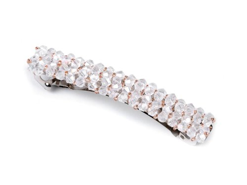 Francouzská spona s broušenými korálky luxusně ozdobí slavnostní účes. Má velmi kvalitní celokovové provedení. Zacvakávací mechanismus je pevný. Broušené korálky se oslnivě třpytí, upoutají pozornost už z dálky. Délka části pro vlasy je 6 cm.