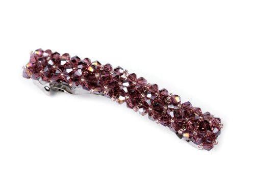 Francouzská spona s broušenými korálky luxusně ozdobí slavnostní účes. Má velmi kvalitní celokovové provedení. Zacvakávací mechanismus je pevný. Broušené korálky se oslnivě třpytí, upoutají pozornost už z dálky. Délka části pro vlasy je 6 cm.