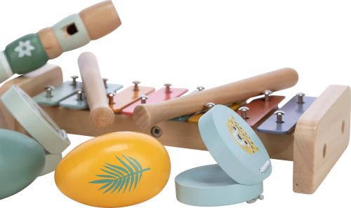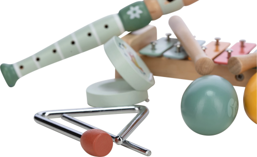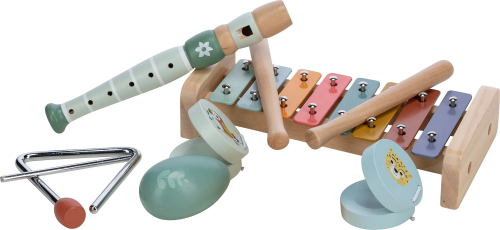 Sada pěti hudebních nástrojů pro všechny malé hudebníky. První hudební nástroje umožňují dítěti poznávat nové zvuky a tóny. Krásně barevný hudební set láká děti k jejich prozkoumávání.