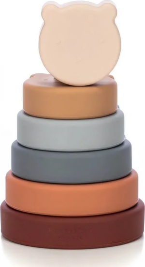 Silikonová skládací věž podporuje vývoj motorických schopností dítěte. Medvídci se skládají na sebe od největšího k nejmenšímu. Slouží rovněž jako kousátko v období prořezávání zoubků - jemně masíruje dásně a tím ulevuje od bolesti. Vlastnosti: