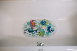 vhodná do vany i dětských vaniček, měkký materiál, pro správné připevnění podložky nejprve napusťte vanu vodou, poté umístěte podložku a rovnoměrně ji přitlačte na dno, rozměry: 69 x 39 cm.