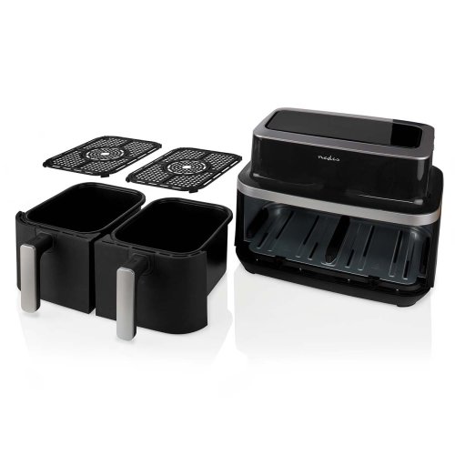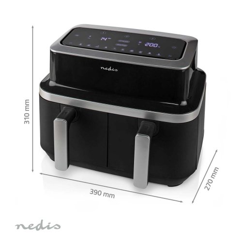 Horkovzdušná fritéza Nedis KAAF320BK je s kapacitou 8,4 l. Ta je rozdělena do 2 samostatných košů (2 x 4,2 l) a je skvělým pomocníkem do každé velké rodiny. Díky speciální technologii vysokorychlostního cirkulačního ohřevu horkého vzduchu v ní připravíte vynikající pokrmy, které si zachovají svou přirozenou chuť a vůni. Výsledek je krásně křupavý, a to bez použití oleje nebo jen s kapkou. Kromě toho vám umožní grilovat, opékat či péct. Můžete tak zapomenout na zápach přepáleného oleje ze smažení.