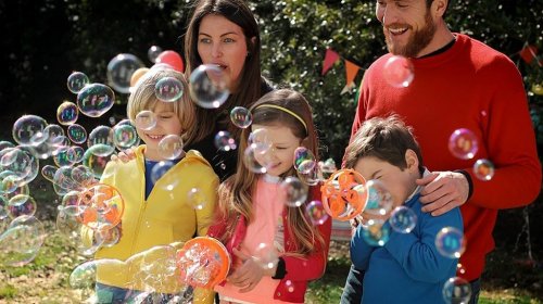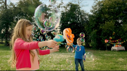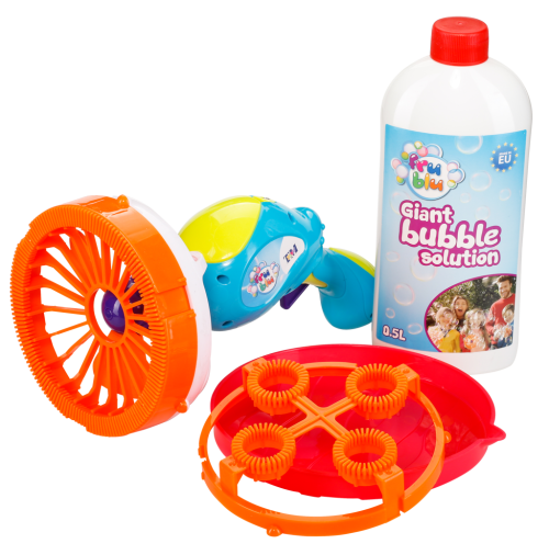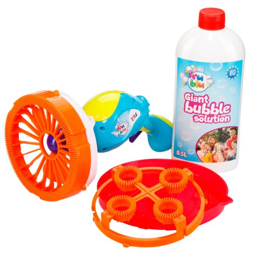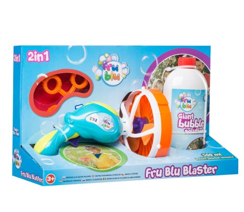 FRU BLU - BLASTER - pistol na mega bubliny se dvěma nástavci na bubliny různé velikosti a 0,5 l tekutiny