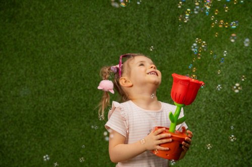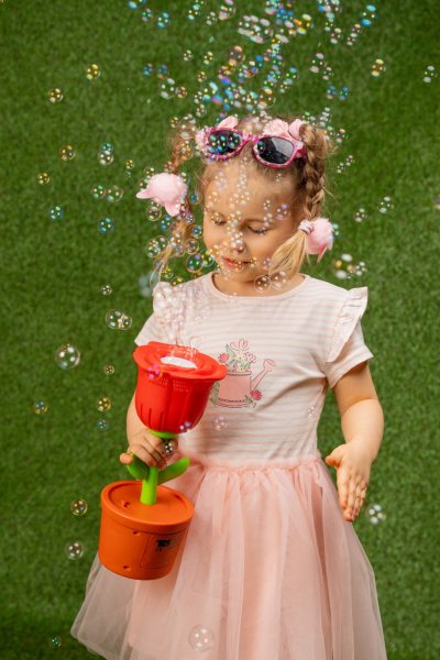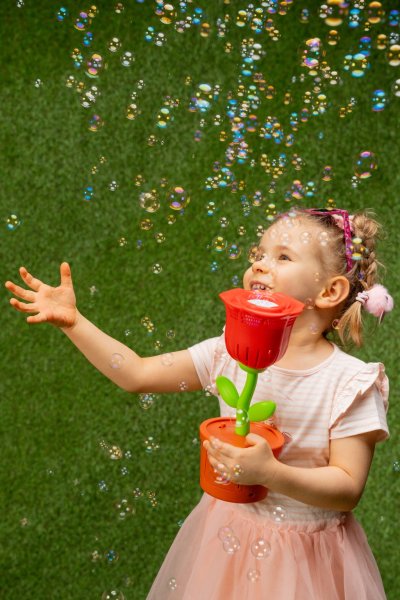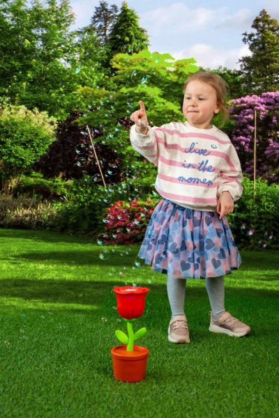 Sada na hraní s mýdlovými bublinami ve tvaru růže je skvělou zábavou pro nejmenší milovníky bublin. Hračka povzbuzuje děti k pohybu a zapojuje je do chytání bublin, které se vznášejí ve vzduchu. Stroj rychle vytváří oblak drobných bublin, přináší spoustu radosti a skvěle zpestřuje dětské hry. Navíc je zařízení vybaveno LED světlem, díky kterému bubliny vypadají výjimečně, zejména večer, a vytvářejí kouzelnou atmosféru.Sada obsahuje: 2 lahvičky s roztokem na malé bubliny po 40 ml (celkem 80 ml), bublinkový stroj ve tvaru růže. Je nutné použít 3× AA baterie 1,5 V (baterie nejsou součástí balení). Nevhodné pro děti do 3 let.