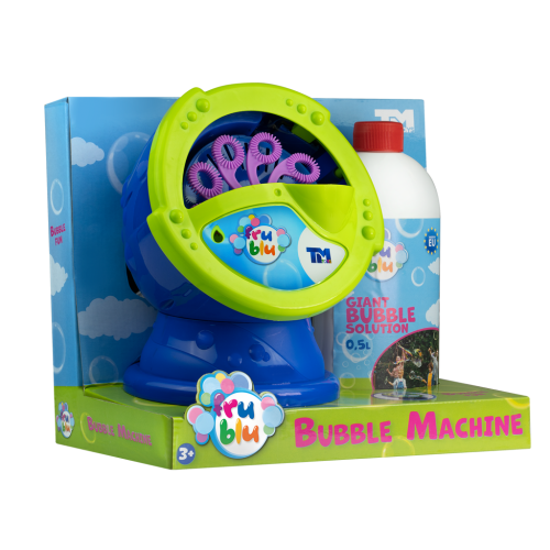 FRU BLU stroj na bubliny vytváří velké množství bublin. Ke spuštění stačí vložit 4 x AA baterie (nejsou součástí balení) a nalít FRU BLU náplň na bubliny. Poté zmáčknete spínač a děti se můžou těšit na tisíce zářivých bublin. V balení spolu s 0,5L náplně. Dbejte na umístnění na rovném povrchu.Bubliny FRU BLU září všemi barvy duhy. Bubliny FRU BLU vznikají díky speciální tekutině, která je produkovaná v EU. Jsou trvanlivé a jen tak neprasknou.