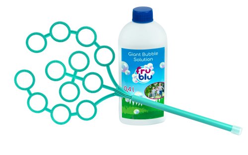 Bubliny FRU BLU dosahují obrovských rozměrů a mají neskutečné tvary. Září všemi barvy duhy. Bubliny FRU BLU vznikají díky speciální tekutině, která je produkovaná v EU. Jsou trvanlivé a jen tak neprasknou.