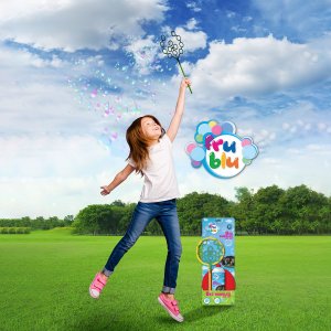 Sada obsahuje 2 obruče - 1 pro výrobu velkých bublin a jednu pro miliony malých bublinek. V balení také nádoba na tekutinu a náplň 0,5l. Bubliny FRU BLU dosahují obrovských rozměrů a mají neskutečné tvary. Září všemi barvy duhy. Bubliny FRU BLU vznikají díky speciální tekutině, která je produkována v EU. Jsou trvanlivé a jen tak neprasknou.