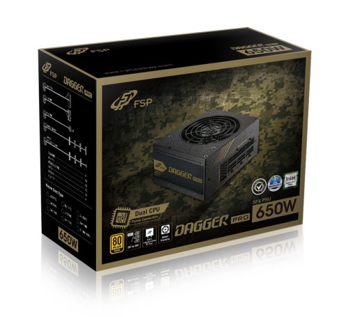 FSP DAGGER PRO vyhovuje standardní velikostí SFX a obsahuje adaptér ATX, který uživatelům umožňuje snadnou instalaci zdroje SFX do šasi ATX, Micro-ATX nebo Mini-ITX. I přes kompaktní velikost, ale přichází s vysokým výkonem, zejména +12 V single-rail nabízí VGA kartám jednotlivě plný výkon, aby nedošlo k přetížení. Kromě toho plně modulární a celočerný design kabelů šetří váš prostor, nabízí lepší proudění vzduchu a umožňuje snadnou správu kabelů pro dokonalý vzhled.