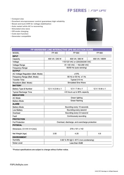 UPS selector: https://energy.fsp-europe.com/ -> Tools -> UPS Selector Odkaz na stránky výrobce: https://energy.fsp-europe.com/product/fp-600/