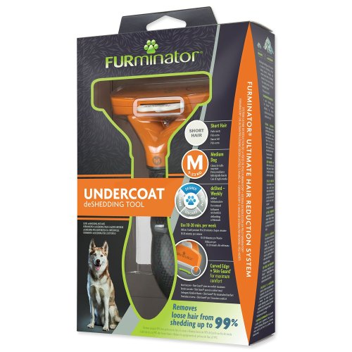 Vyčesávací hrablo FURminator pro krátkosrsté psy středních plemen.