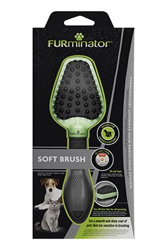 Udělejte z péče o srst jemný zážitek s naším FURminator® Soft Brush kartáčem navrženým pro krátkosrsté psy a kočky, zejména pro ty, kteří jsou citliví na kartáčování. Díky své jemnosti jej lze použít také u štěňat a koťat, aby byla šetrně seznámena s pravidelnou péčí o srst. Tento oboustranný kartáč má na jedné straně měkké silikonové výstupky, které masírují kůži vašeho mazlíčka a zároveň odstraňují uvolněnou srst a podporují hladkou a lesklou srst. Měkké a pružné nylonové štětiny na druhé straně slouží k jemnému a kontrolovanému kartáčování, které pomáhá odstranit lupy, prach a nečistoty. Pro maximální pohodlí a snadné použití je náš Soft Brush vybaven osvědčenou ergonomickou rukojetí. Protože každý krátkosrstý mazlíček si zaslouží jemnou péči!