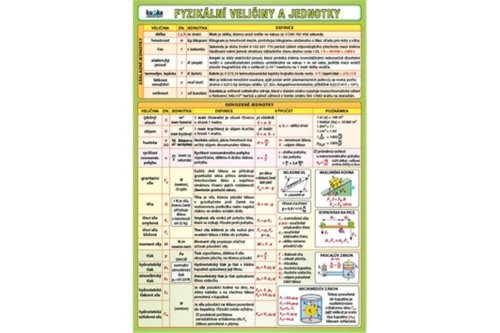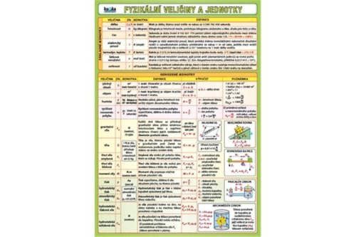 Přehled fyzikálních veličin a jejich jednotek určený zejména žákům základních škol. Tabulka obsahuje definice, základní vzorce a fyzikální zákony.