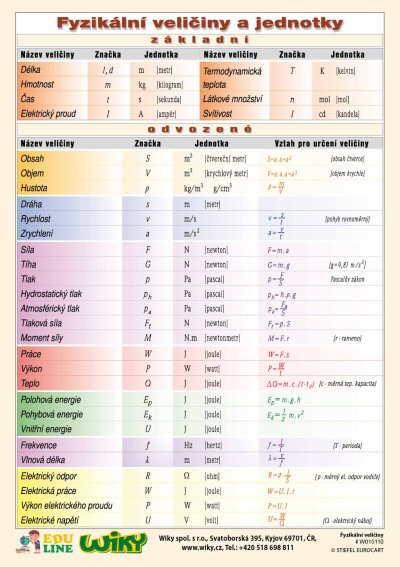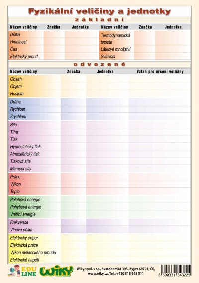 Obsah didaktické pomůcky tvoří přehledná tabulka fyzikálních veličin a jednotek.