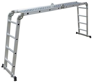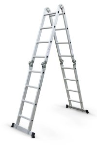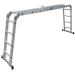 Hliníkové štafle můžete využít jednak jako dlouhý žebřík v délce až 4,6 m. Další variantou je možnost sestavit štafle jako přenosné lešení. Balení obsahuje 2 ks podlážek pro přestavbu štaflí na lešení. Díky konstrukci s klouby lze štafle snadno umístit přes hřeben střechy.