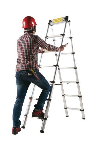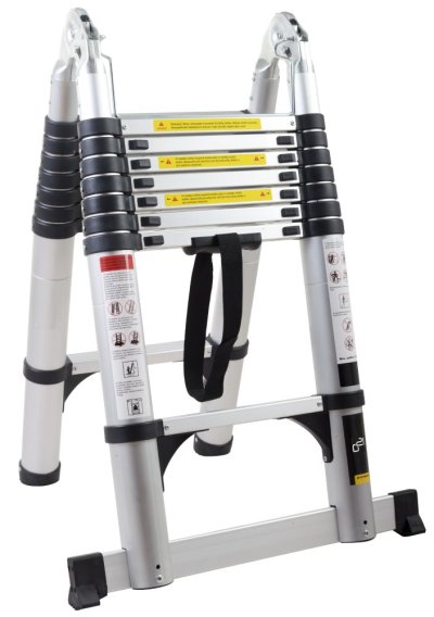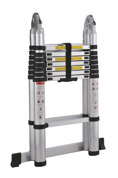 Díky speciálnímu kloubu lze tento lehký skládací hliníkový teleskopický žebřík proměnit v praktické štafle.