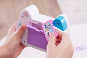 Řekněte sýr s fotoaparátem Gabby’s Dollhouse Kitty Camera. Užijte si velkou kočičí zábavu hrou na focení se svými chlupatými kamarády (figurky a hrací sady se prodávají samostatně). Tento hrací fotoaparát v životní velikosti má autentický design a styl jako v seriálu Gábinin kouzelný domek a jeho fanoušky nepochybně okouzlí. Stačí otevřít panel na zadní straně fotoaparátu a vložit tři plastové fotografie. Potom se podívejte do hledáčku, řekněte sýr a stiskněte tlačítko. Kočička mrkne a na jazyku se jí objeví fotka. Na fotoaparátu jsou také barevná tlačítka, která se dají mačkat a kterými můžete otáčet, takže poslouží jako roztomilá hračka pro neklidné ruce. A pokud chcete zažít ještě jedno překvapení, naskenujte QR kód na straně produktu a nainstalujte si bezplatnou aplikaci Gabby’s Dollhouse (dostupná pro iOS a Android). Plyšáci, panenky, figurky a hrací sady Gabby’s Dollhouse jsou ideálními hračkami pro předškoláky, kteří ve své fantazii rádi zažívají imaginární dobrodružství. Pokud chcete zažít ještě víc vzrušujících her, vyzkoušejte kuchyni „Cakey“ a troubu „Bakey with Cakey“, která svět kouzelného domku ještě více rozšíří. Přineste si domů super roztomilý fotoaparát na hraní a předstírejte, že fotíte stejně jako Gábina s Gabby’s Dollhouse Kitty Camera.