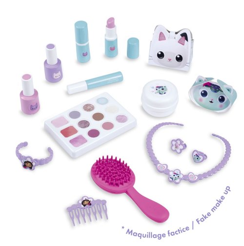 Kosmetický kufřík v designu Gabby´s Dollhouse je naplněn vším, co je potřeba pro skvělé mobilní wellness, ať už jde o účes, nehtový salon nebo make-up.