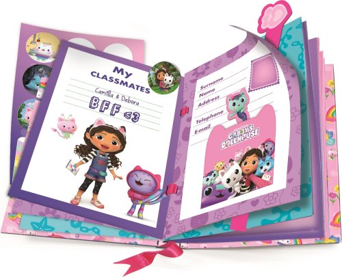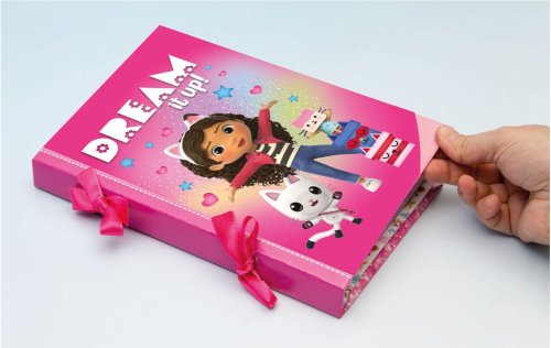 Vytvořte a přizpůsobte si svůj deník pomocí postaviček ze seriálu Gábinin kouzelný domek. Bohatá a zábavná sada se spoustou doplňků, včetně štětců, třpytek, pastelů, stuh a samolepek. Ideální pro rozvoj kreativity a zdokonalování manuálních a psacích dovedností. Rozměr balení: 29x22,5x4,7. Věk 6+
