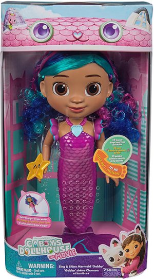 Součástí balení jsou dvě AAA baterie, které jsou již přiloženy, takže je hračka ihned připravena k použití. Panenka Mořská víla Gábina je součástí tematické série hraček z Gábinina kouzelného domečku, která zahrnuje různé figurky, doplňky a další postavy z oblíbeného dětského filmu. Tato hračka je určena zejména pro děti, které chtějí zažít oblíbené momenty z filmu nebo si vytvářet vlastní příběhy a dobrodružství v kouzelném světě Gábiny. Panenka je vhodná pro děti od 3 let a nabízí hodiny zábavy s interaktivními prvky a barevnými efekty.