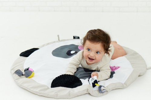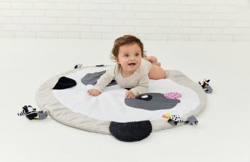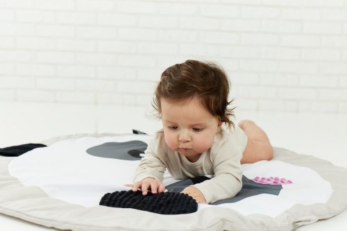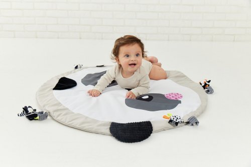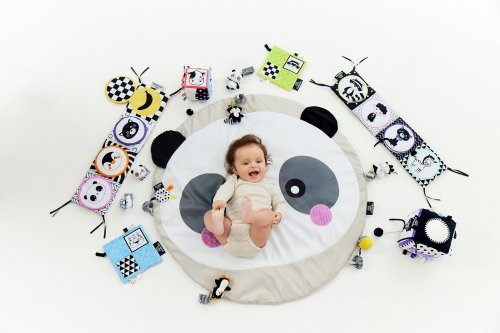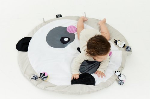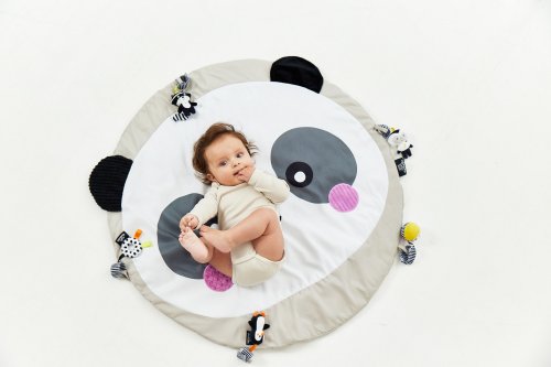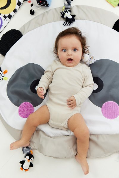 Podložka GaGaGu má kontrastní barvy, které stimulují zrak dítěte. Uši a růžové tváře pandy jsou vyrobeny z různých materiálů s různou texturou, což poskytuje dítěti skvělé hmatové vjemy.