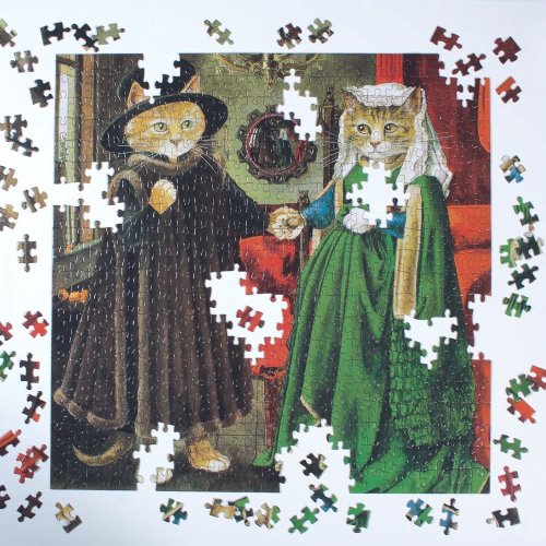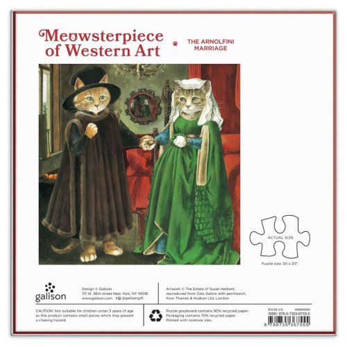 Arnolfiniho manželství je vtipná a láskyplná parodie na ikonické dílo Van Eycka od kočičí umělkyně Susan Herbert. Puzzle od anglického výrobce GALISON. Rozměr složeného puzzle cca 51 x 51 cm