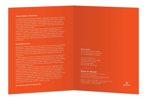 Dvojnásobná porce! Oboustranné puzzle obsahuje na jedné straně obraz od umělce Derricka Adamse a na druhé straně obrazy od studentů střední školy Dreamyard v Bronxu, kteří se inspirovali Adamsovým …